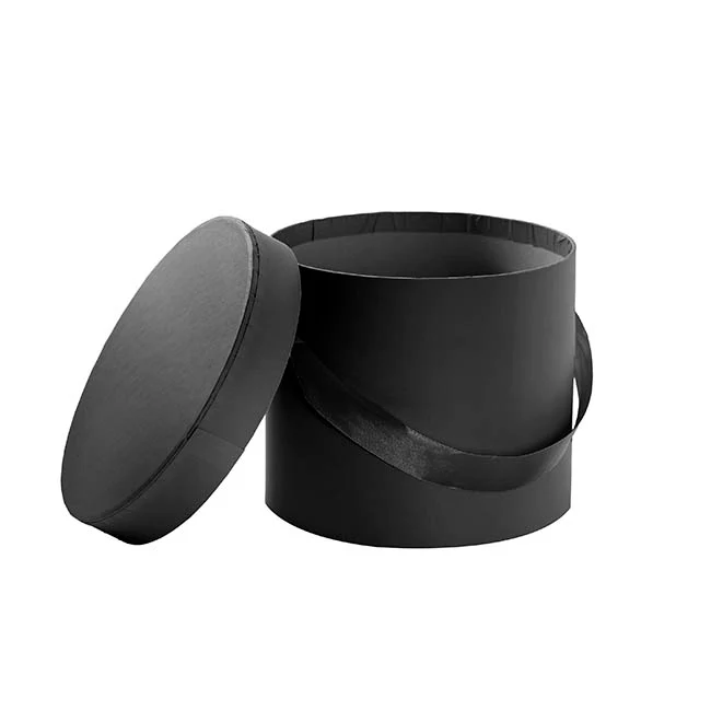 Flower Hat Box Petite Round Black Set 3 (17Dx13.5cmH)