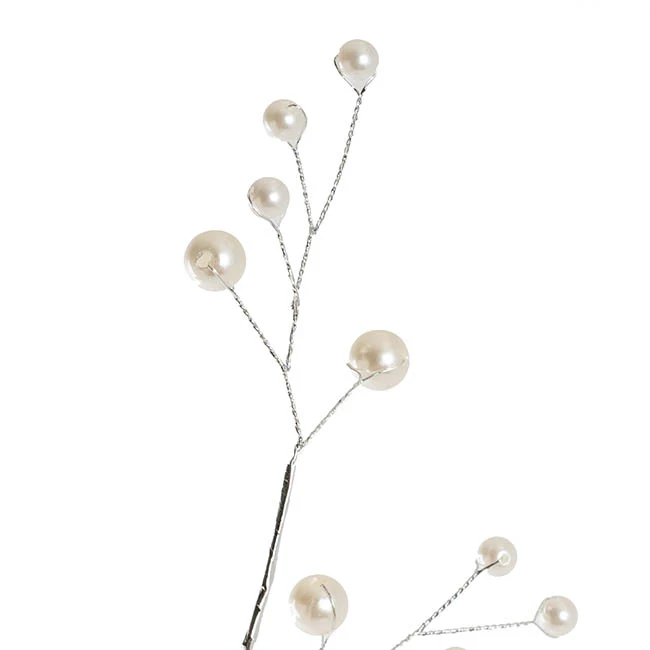 Elevate your decor with our Ivory Pearl Spray in Silver. This stunning spray features elegant ivory pearls gracefully arranged on a luxurious silver stem, adding a touch of refined sophistication to any arrangement. Perfect for enhancing centrepieces, floral displays, or special occasions, it brings a radiant and classic charm that beautifully complements your decor with its timeless elegance.